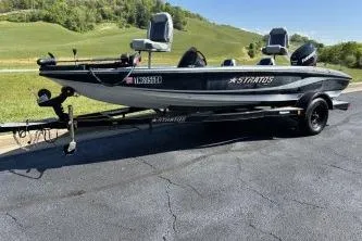 Introducing the 2006 Stratos 275 Pro XL, a remarkable bass boat that combines performance and style. With an overall length of 20.17 feet, this vessel is designed for both agility and stability on the water. The modified vee hull, crafted from durable fiberglass, ensures a smooth ride, making it perfect for fishing enthusiasts and recreational boaters alike. Powered by a robust Evinrude 90 HP outboard engine, this boat delivers impressive performance, allowing for swift navigation across lakes and rivers. The thoughtful design includes essential features for a great day on the water, enhancing your boating experience. Whether you're casting lines or enjoying a leisurely cruise, the Stratos 275 Pro XL is built to meet your needs with reliability and ease. Experience the thrill of the water with this exceptional bass boat, ready to create unforgettable memories.