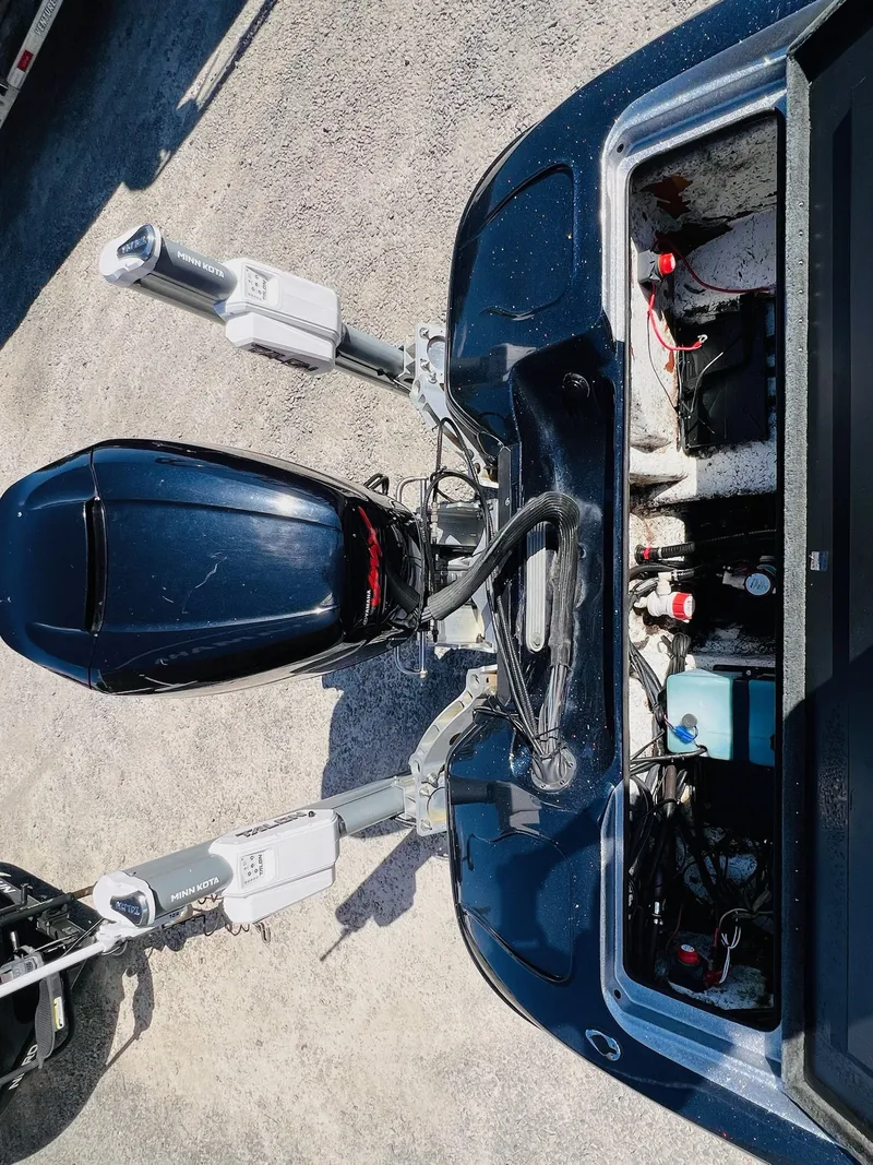 Yamaha 150 VMax, Jack Plate, Stainless Steel Prop, Minnkota Ultrex, Battery Charger, Twin 8' Minnkota Talons, Humminbird Helix 9 Console & Bow, Boat Cover, Keel Guard, Trailer w/ Swing Tongue, Spare Tire, Aluminum Wheels