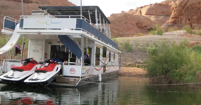 Starchaser is a well-appointed houseboat designed to deliver an unforgettable Lake Powell experience for families and groups. With spacious sleeping arrangements, expansive upper deck amenities, and thoughtful interior upgrades, this vessel is ideal for extended stays and late-summer adventures.