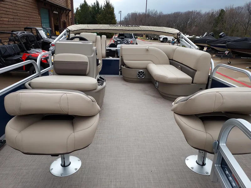 Use the 7' bimini top to get some shade while you fish. Enjoy your favorite tracks through the Bluetooth®-compatible AM/FM Wet Sounds® stereo with 2 upholstery speakers. Integrated rod holders, drink holders, and more keep everything you need for a great day of fishing close by.