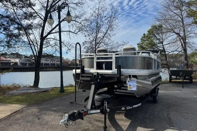 This seven-passenger fishing pontoon hits the water with new console and lounge designs. Get three extra cubic feet of storage thanks to clever backrest cut-outs. The redesign also adds a seat in front of the driver console, phone compartments, and four more cupholders. Cast from the shade of a standard 7' bimini top in one of the two folding fishing seats. Find your spot on the lake from the decked-out driver console, which comes with its own rod holder.