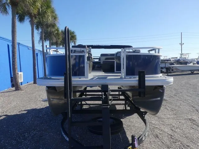 This seven-passenger fishing pontoon hits the water with new console and lounge designs. Get three extra cubic feet of storage thanks to clever backrest cut-outs. The redesign also adds a seat in front of the driver console, phone compartments, and four more cupholders. Cast from the shade of a standard 7' bimini top in one of the two folding fishing seats. Find your spot on the lake from the decked-out driver console, which comes with its own rod holder.