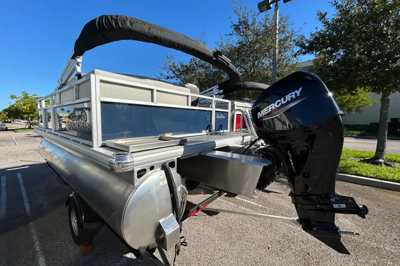 This seven-passenger fishing pontoon hits the water with new console and lounge designs. Get three extra cubic feet of storage thanks to clever backrest cut-outs. The redesign also adds a seat in front of the driver console, phone compartments, and four more cupholders. Cast from the shade of a standard 7' bimini top in one of the two folding fishing seats. Find your spot on the lake from the decked-out driver console, which comes with its own rod holder.