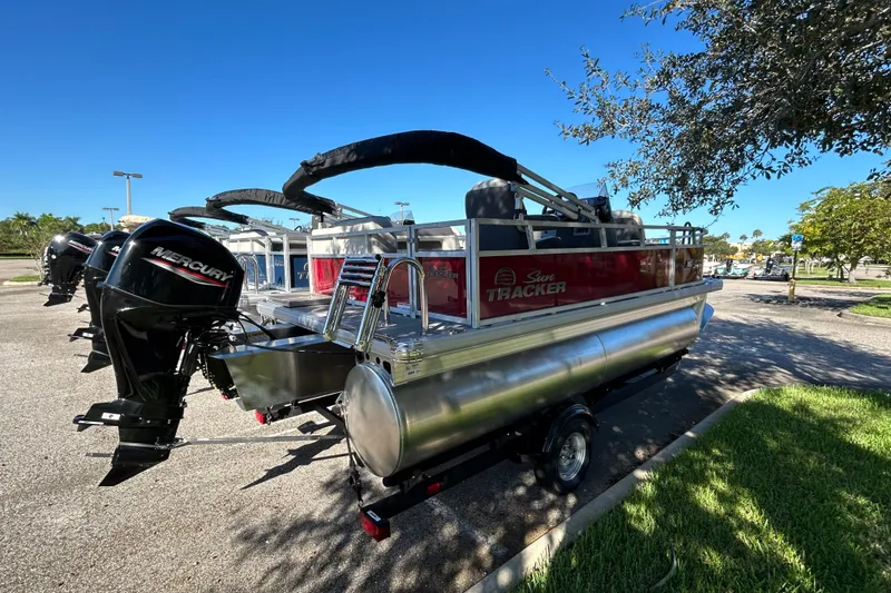 This seven-passenger fishing pontoon hits the water with new console and lounge designs. Get three extra cubic feet of storage thanks to clever backrest cut-outs. The redesign also adds a seat in front of the driver console, phone compartments, and four more cupholders. Cast from the shade of a standard 7' bimini top in one of the two folding fishing seats. Find your spot on the lake from the decked-out driver console, which comes with its own rod holder.