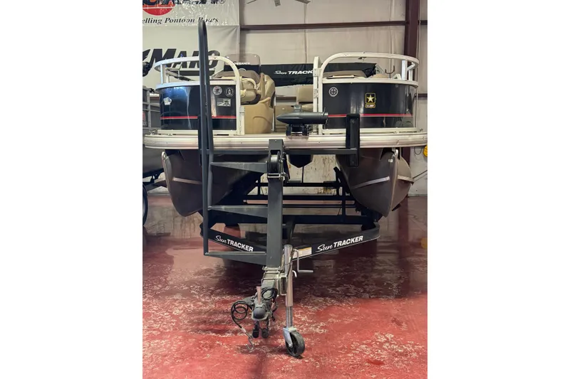 The Sun Tracker Bass Buggy 18 DLX is the ultimate fishing pontoon for anglers who value comfort, versatility, and a touch of luxury on the water. With its expanded size and thoughtful design, this boat offers the perfect balance of fishing functionality and family-friendly amenities. The spacious deck layout provides plenty of room for casting, reeling, and maneuvering, while also accommodating up to eight passengers, making it ideal for both solo adventures and group outings. Built on Sun Tracker's renowned multichambered pontoon design, the Bass Buggy 18 DLX delivers excellent stability and a smooth ride, even in choppy conditions. This model is fully equipped with angler-focused features, including two fishing chairs, a 10-gallon aerated bow livewell, a 8 gallon aerated aft livewelll, and built-in rod holders, ensuring that everything you need for a successful day of fishing is close at hand. For family outings, the comfortable wraparound lounges and adjustable Bimini top offer the perfect space to relax and enjoy the scenery. Ample under-seat storage keeps the deck clutter-free, while the durable construction and reliable Mercury® outboard motor ensure dependable performance and easy handling in a variety of water conditions. Whether you're fishing with friends, hosting a family picnic on the water, or simply enjoying a leisurely cruise, the Sun Tracker Bass Buggy 18 DLX delivers a versatile and enjoyable experience for everyone aboard, making it a standout choice for those who want it all.