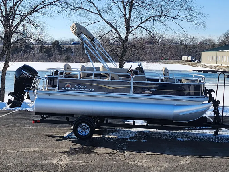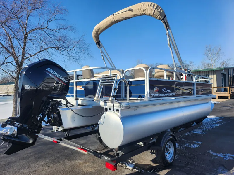 2023 Sun Tracker Bass Buggy 18 DLX comes with: 75 h.p. Mercury L 4 Stroke with Only 6 hours, Custom Cover, Bimini Top, 2 Front/2 Rear Fishing Seats, Kicker Stereo/BT, Lowrance FF, 55 lb. Minn Kota Powerdrive Troll Motor, Front/Rear Livewells, Swim Deck, Trailer, and more!