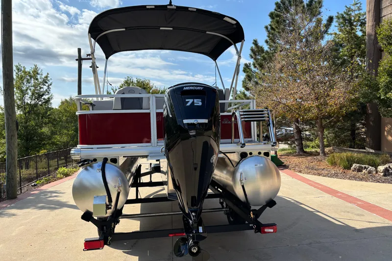 Up to eight fishin' buddies can take to the dual fishing decks of this redesigned fishin' pontoon. Three swiveling fishing chairs around a 10-gal. bow livewell and an 8-gal. aft livewell headline the list of features that make this the perfect boat for casting lines to catch fish and memories. When the fishing's done, sprawl out on the L-shaped lounge and crank up the stereo. The new and improved boarding ladder makes follow-up cannonballs a breeze. Other features new to the 2026 model year include three extra cubic feet of storage space, more cupholders, in-lounge storage, and a new seat in front of the helm.