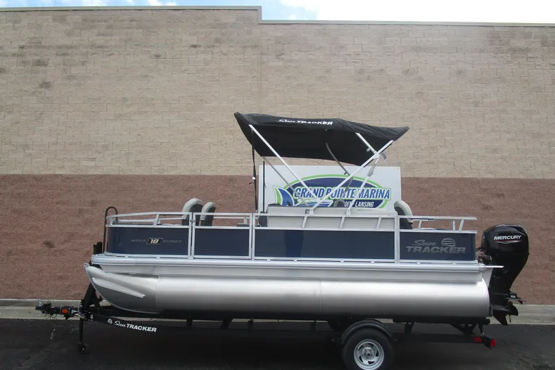 2026 Sun Tracker Bass Buggy DLX pontoon with Mercury 60HP for sale at Grand Pointe Marina. Best price in Michigan. Family & fishing pontoon. Financing & delivery.