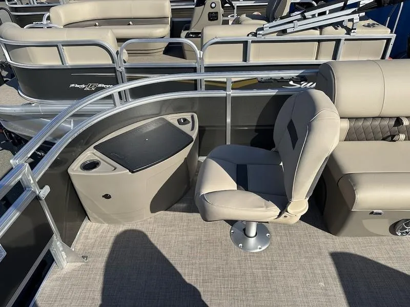 Introducing the stunning 2025 Sun Tracker FB 20 DLX, a new pontoon boat that perfectly blends style and functionality. With an overall length of 20 feet, this vessel is designed for both leisurely cruising and entertaining. The boat features a robust aluminum hull, ensuring durability and stability on the water. Powered by a reliable MERCURY 90 ELPT 4S CT outboard engine, this pontoon offers an exhilarating experience with its efficient gasoline fuel system. The thoughtful design includes ample space for relaxation and socializing, making it an ideal choice for family outings or gatherings with friends. Whether you're exploring serene lakes or enjoying a day of fishing, the Sun Tracker FB 20 DLX promises an enjoyable and comfortable ride. With its modern features and sleek design, this pontoon boat is ready to create unforgettable memories on the water.