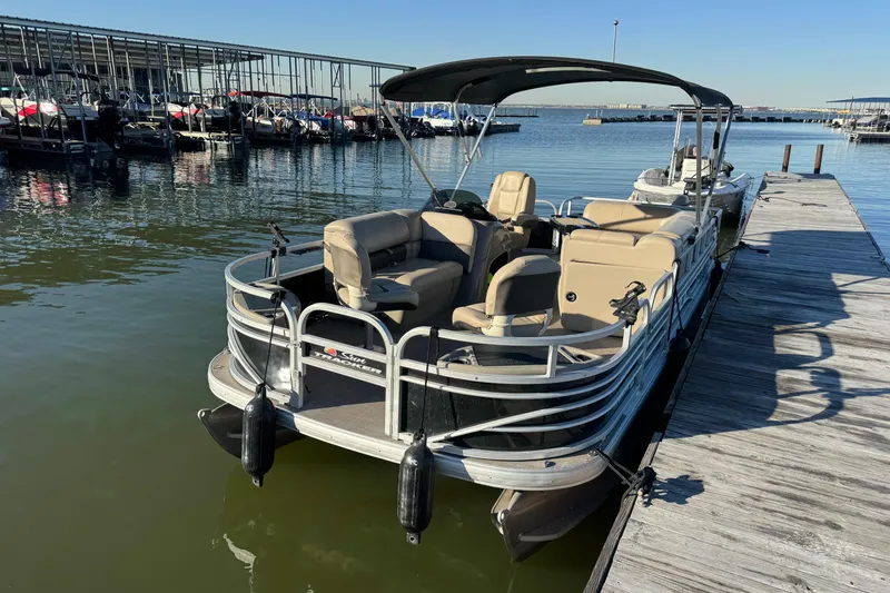 2022 Sun Tracker 20 DLX Fishing Barge For Sale. Powered by Mercury 4-Stroke 60hp, Power Bimini, Livewell for Fishing, Fishing Rod Holders, Storage, Stereo, Fish Finder, Boat Cover and Trailer.