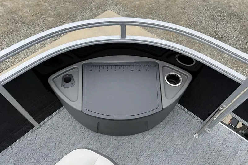 - Front fishing station w/2 pedestal seat base locations; rail-mounted rod & tool holders; & bow starboard storage compartment w/rod & drink holders