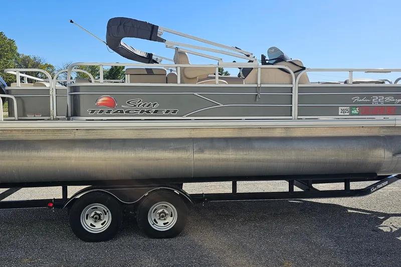 This 2016 Sun Tracker Fishin' Barge 22 DLX is a well-maintained pontoon built for fishing and family fun. Powered by a Mercury Marine 90ELPT 4S CT outboard engine with 115 HP and running on unleaded fuel, it delivers reliable performance and a smooth ride on the water.