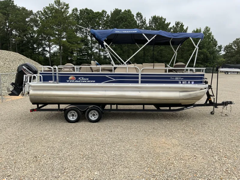 VERY NICE PRE-OWNED 2018 TRACKER FISHING BARGE 22 DLX. THIS BOAT INCLUDES A MERCURY 90HP 4-STROKE OUTBOARD AND TANDEM AXLE TRAILER. IT ALSO COMES WITH THE OPTIONAL FISHING PACKAGE(TROLLING MOTOR AND FISH FINDER), SST PROP, AND DOUBLE BIMINI TOP. THIS IS A CONSIGNMENT SALE. CONTACT US TODAY FOR MORE INFORMATION.