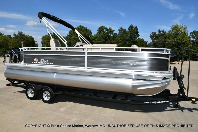 , Stock# ST1049.......2025 Fishin' Barge 22 DLX powered by a 150HP Mercury 4 Stroke!! This brand-new 2025 Sun Tracker Fishing Barge 22 DLX pontoon boat is designed for unforgettable days on the water-perfect for cruising, tubing, fishing, or relaxing with friends and family. With wide open space, plush seating, and smooth, quiet Mercury 4-stroke power, it's the ultimate lake day machine. Equipped with a tandem axle trailer with brakes, a boat cover, and one of the best warranty packages in the industry: ✔️ 10-Year Bow-to-Stern Factory Warranty ✔️ Lifetime Structural Warranty on the Boat ✔️ 5-Year Mercury Engine Warranty.......This new pontoon boat for sale includes batteries, a stainless steel prop, and all dealer freight & prep-no hidden fees. Full pricing and window sticker are available right here on our website. Call us today 1-877-827-2840, financing available with approved credit and trades are always welcome at Pro's Choice Marine! ......................Specs: Deck Length: 22' 1''........Deck Width: 8' 6''........Max. Recommended HP: 150 HP........Fuel Capacity: 32.1 gal........Pontoon Log Length: 22' 3''........Pontoon Log Diameter: 24''........Pontoon Log Material: 0.080 5052 marine alloy........Max. Person Capacity: 11 persons........Max. Person Weight: 1500 lbs........Max. Person, Motor & Gear Weight: 2145 lbs........Interior Depth: 26''........Average Dry Weight: 2040 lbs........Average Package Weight: 3875 lbs........Package Height: 9'........Package Width: 8' 6''........Towing Length: 32' 4''........Storage Length: 32' 4''