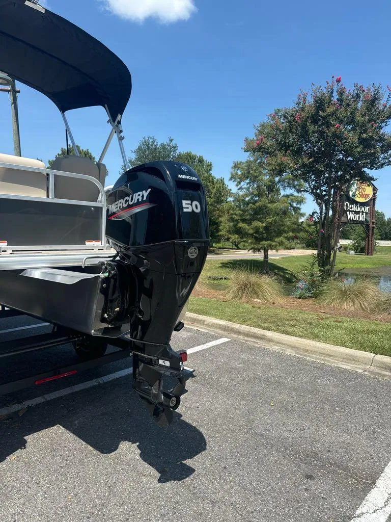 The PARTY BARGE® 16 DLX comes standard with a 20hp Mercury® ELPT FourStroke outboard motor and has a recommended maximum 50hp rating.