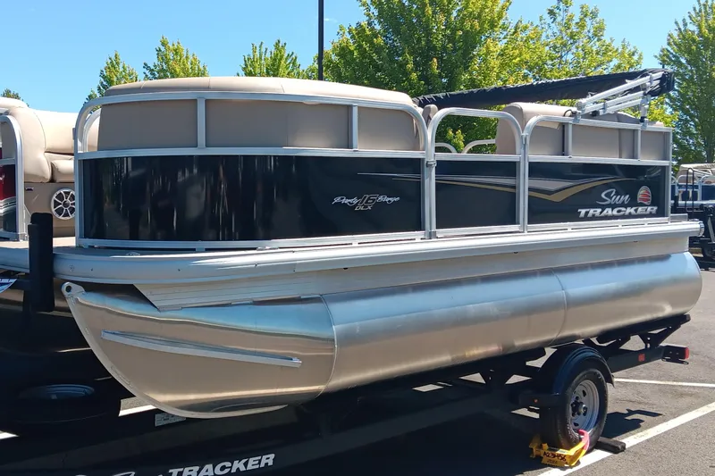 Cruise into the lake life with the 2025 SUN TRACKER® PARTY BARGE® 16 DLX. The most compact pontoon boat in the SUN TRACKER® family makes towing a breeze. Its deck has plenty of room for a crew of 7 friends and family. Let them kick back on the 3 luxurious corner lounges while the pilot sits at the helm in the swiveling captain's chair. Each seat is wrapped in luxurious and durable vinyl. The wraparound fence sports a port wheelchair-accessible gate. You'll also find gates at the fore and rear boarding platforms.
