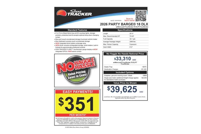Though the most compact in the series, the 2026 SUN TRACKER® PARTY BARGE® 16 DLX brings the fun for up to eight adventurers. Regardless of whether your crew are thrill-seeking partiers or wanderlust-struck explorers, this affordable pontoon is built to boost your summer.