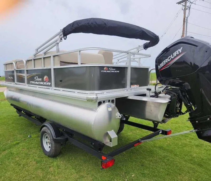 Upgrade your explorations with the 2025 PARTY BARGE® 18 DLX! Fit up to 9 passengers in this quality pontoon boat. They can relax on one of the 3 lounge couches while the pilot stays comfortable in the swiveling, telescoping captain's chair. Those lounges feature under-seat storage with plenty of space to hold all you need for today's aquatic adventure. The console also features a hidden storage space perfect for stowing away a cooler.