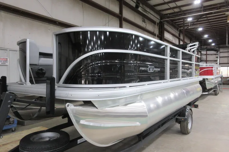 Bring on the fun with the 2026 SUN TRACKER® PARTY BARGE® 18 DLX! This lake-ready pontoon fits up to nine passengers and keeps them entertained all weekend long.