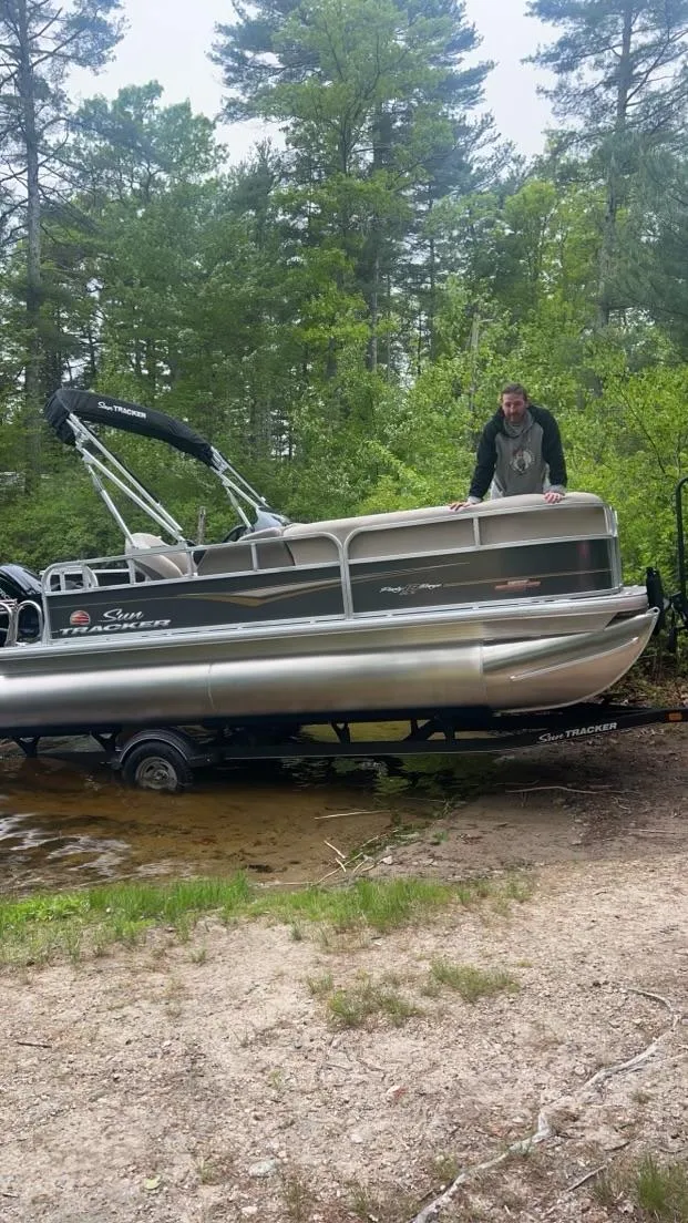 Well-maintained 2023 SunTracker 18 DLX Party Barge with low hours, perfect for cruising and entertaining. Features a spacious deck, comfortable seating, Bimini top, and a reliable Mercury 75hp outboard motor. Comes with a matching trailer for easy transport. Great condition and ready for the water! Contact for details.