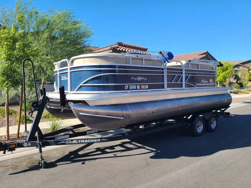 This 2022 Sun Tracker Party Barge 20 DLX with only 20 hours on the 90 Hp Mercury outboard. The Party Barge 20 DLX is perfect for those who want a spacious recreation pontoon boat that's big enough to handle a crew up to 10 but isn't so big it can't be towed and launched by just two people. Regardless of your crew size this pontoon boat packs the right amount of features for a full day of fun. to start, check out the dual bow couches and midship L - lounge, all with the Stow More seat storage system to provide plenty of space ( the seat back compartments can even be accessed safely while cruising.) Take a cooling dive off the full-width swim platform- there's even an extra-large ladder for easy reboarding. So, load it up with gear, and family and friends and head for your favorite lake for some quality fun. Contact Image Boats for financing.
