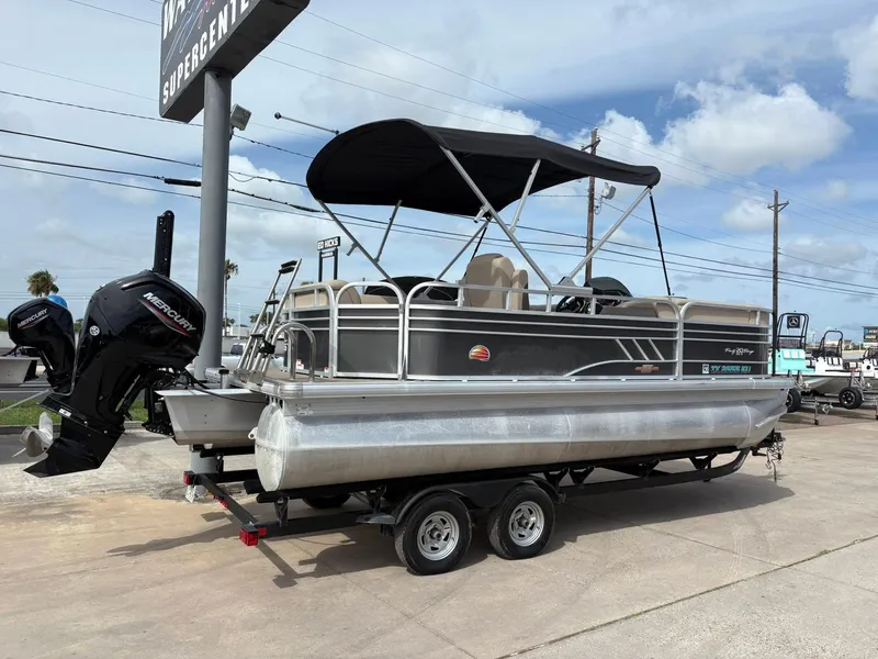 AVAILABLE NOW!!! 2023 Sun Tracker Party Barge 20 w/ a 90hp Mercury. $29,995 plus ttl. Standard features and options include: ~Bimini top ~8ft Power Pole ~Boarding ladder ~3 blade stainless steel prop ~Am/fm BT Kicker stereo w/ 2 pair of speakers ~woven floor ~4 stainless steel cleats ~LED navigation lights ~Plenty of seating and storge ~Removable Tabletop ~Tandem axle trailer ~Spare tire