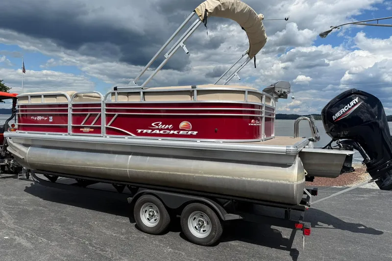 Just listed. 2023 Sun Tracker 20 DLX Party barge. This boat is powered with a Mercury 90 Command thrust outboard with only 15 hours! It comes with a full cover, electric bimini top, grill, Stainless steel prop, kicker stereo system, and more! also comes with dual axle trailer under it. Give us a call to discuss this boat!