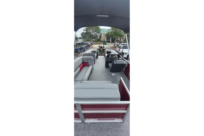 Some exciting new changes come with the 2026 model! The captain's console has received a complete facelift. The three corner lounges give your passengers plenty of space to relax in. These lounges have new accents that match the fence colors and also sport great new corner storage cubbies with more cupholders. Lift those pillow-top seats to reveal hidden storage compartments.