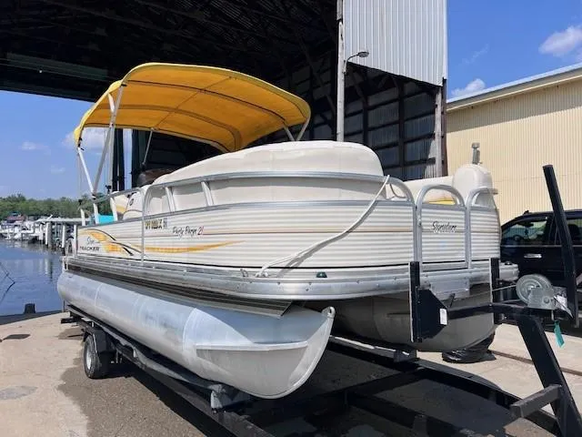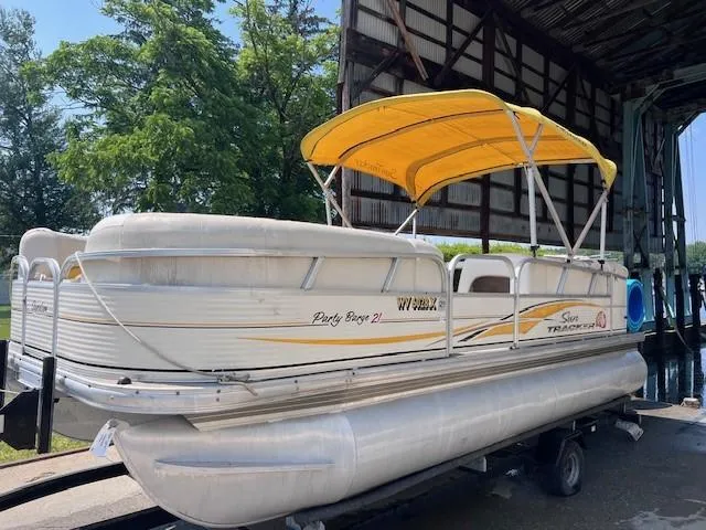 MANUFACTURE DECRIPTION WITH NO GUARANTEE-Check out the SUN TRACKER PARTY BARGE 21 Signature Series and see if it fits you too! This best-selling pontoon boat meets more needs of more people than any other model we make. Perfect for weekends, vacation days (and maybe a carefully planned "sick day" or two), it lets you take your party to the water in style and comfort. The sleek railings and gently curving, upscale lounges speak luxury from every angle. The generous wraparound bow couches, aft L-lounge and padded sun deck just beg you to slow down and relax - while the full-width aft swim platform invites you to get active and play. And the pop-up changing room invites you to change into something more comfortable - and stay awhile.Features: 24" (60.96 cm) multichambered tubes Extended all-welded aluminum motor pod for more usable deck space Color-keyed 9' (2.74 m) polyester Bimini top Captain's adjustable bucket seat Fiberglass-reinforced console w/tinted windscreen, easy-to-read gauges, storage and trash receptacle Sirius-capable AM/FM/CD stereo w/MP3 jack and 2 speakers Removable dining and game table w/bow and aft bases 2 luxurious, wraparound bow couches w/closed underseat storage and small-item armrest storage Aft L-lounge w/closed underseat storage and small-item armrest storage Aft padded sundeck w/pop-up changing room below Full-width aft swim platform w/fold-down boarding ladder