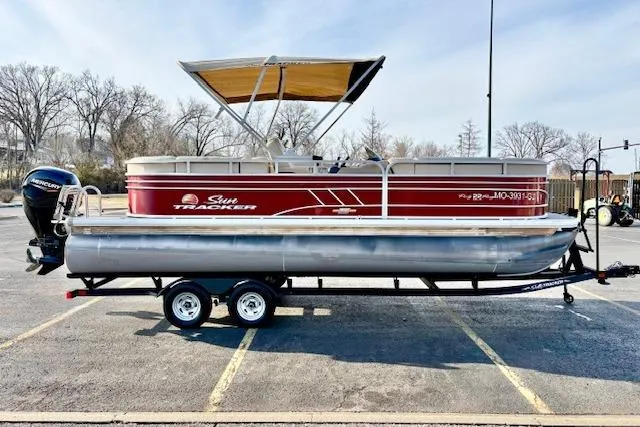 22ft Sun Tracker Party Barge. Fresh local trade, 150hp Mercury 4 stroke with SS prop, 108 total hrs on engine, Power Bimini, Bluetooth stereo, Factory mooring cover ,Matching trailer spare tire and the remainder of the10yr factory warranty. $35,995