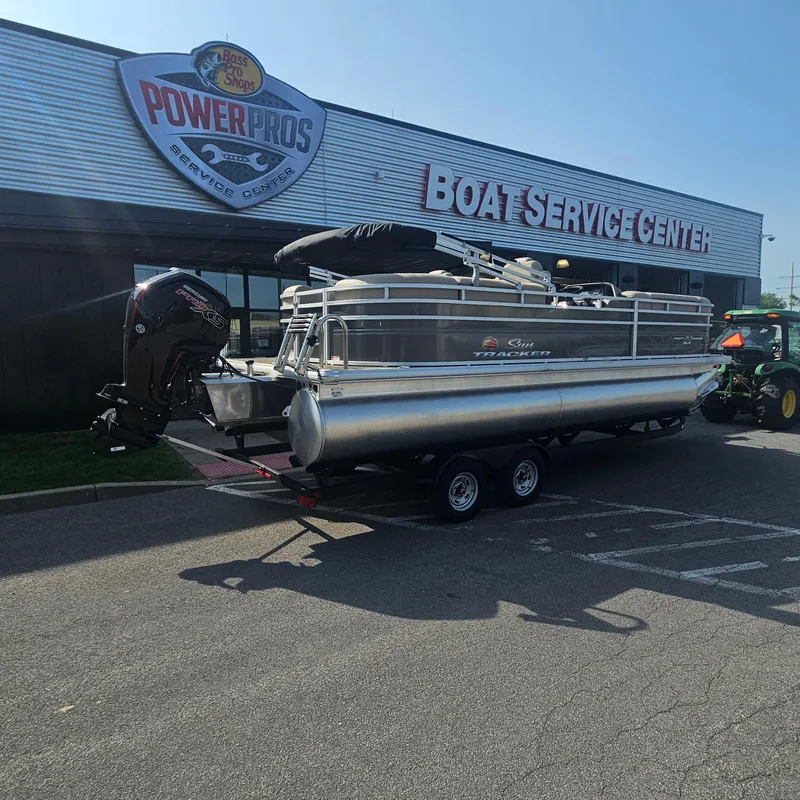 - 10' (3.05 m) SUN TRACKER® QuickLift™ Bimini top w/LED courtesy lights, storage pockets & protective boot (color-coordinated Black w/Charcoal fencing or Sand w/Copper Red fencing)