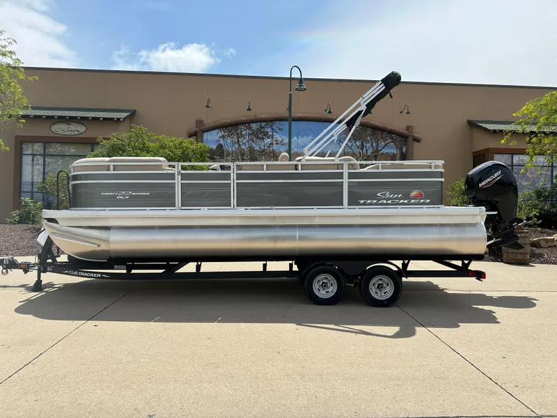 The PARTY BARGE® 22 RF DLX comes standard with a 115hp Mercury® ELPT FourStroke outboard motor and has a recommended maximum 150hp rating.