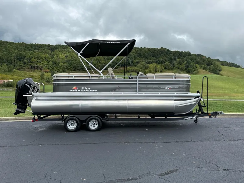 Between standard features such as the full-width swim decks, 10' QuickLift® bimini top, and 4-speaker Wet Sounds® stereo with Bluetooth®, this SUN TRACKER® pontoon boat gives you everything you need to get hours of fun with your favorite people. The back swim deck has a 4-step telescoping boarding ladder for getting back in the boat after taking dips in the water.