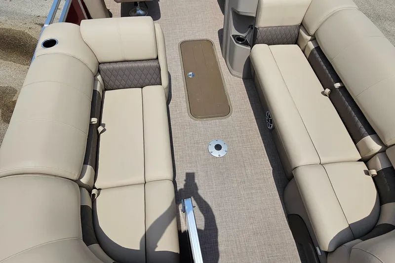 It offers everything from four lounge seats (with our STOW MORE™ seat storage system) to the new SUN TRACKER® QuickLift™ 10' Bimini top to swim platform to the new Wet Sounds stereo and more. All that, combined with things like three inward-swinging gates, padded woven flooring and cooler storage, ensures this pontoon boat is ready for a full day of fun.
