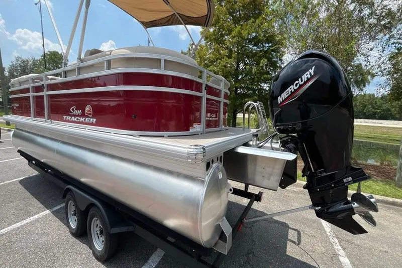 - 10' (3.05 m) SUN TRACKER® QuickLift™ Bimini top w/LED courtesy lights, storage pockets & protective boot (color-coordinated Black w/Charcoal fencing or Sand w/Copper Red fencing)
