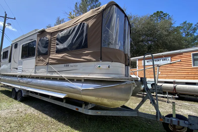 Introducing the Sun Tracker Party Cruiser, a delightful houseboat crafted in 2006. This charming vessel boasts a spacious overall length of 32 feet, perfect for leisurely outings on the water. The aluminum pontoon hull ensures durability and stability, making it an excellent choice for both relaxation and entertaining. Designed for comfort and enjoyment, this used houseboat offers a versatile layout, ideal for gatherings with family and friends. Its thoughtful features enhance the boating experience, providing convenience and ease of use. Whether you're cruising along serene lakes or hosting a fun-filled day on the water, the Party Cruiser is equipped to deliver memorable moments. Embrace the joy of boating with this well-maintained houseboat, ready to create lasting memories on the water.