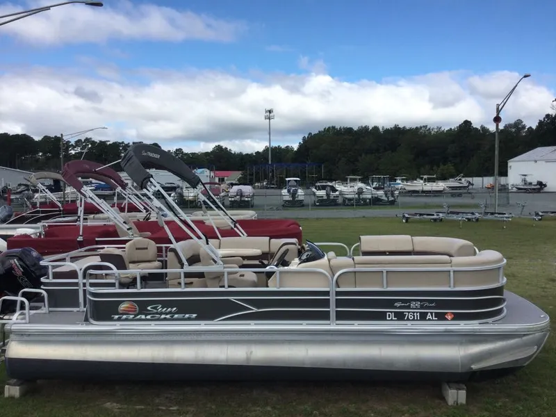 Well equipped and maintained one owner Sport Fish model. Well powered with a Mercury 115HP ProXS with only 53 hours! Motor has had a complete 3 year service including but not limited to, new water pump kit, thermostat, spark plugs, drive shaft and shift shaft seals, and all associated gaskets and seals. The lower unit has been pressure and vacuum tested. With a new prop this package is ready for the water!This 2018 Sun Tracker Sportfish 22 DLX is a 24-foot-2-inch pontoon Features an aft fishing station with two folding chairs, aerated livewell, and rod holders, combined with bow lounges.boat designed to blend fishing, lounging, and cruising for up to 10 people. It features dual aft fishing chairs, and rod storage, alongside plush forward couches and a Bimini top for relaxing. Equipped with STOW MORE seat storage systems, a Bluetooth stereo, and a 10-foot Bimini top