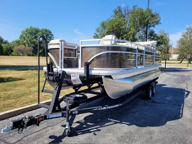 - NEW 9' (2.74 m) SUN TRACKER® QuickLift™ Bimini top w/LED courtesy lights, storage pockets & protective boot (color-coordinated Black w/Black fencing or Sand w/Caribou fencing)