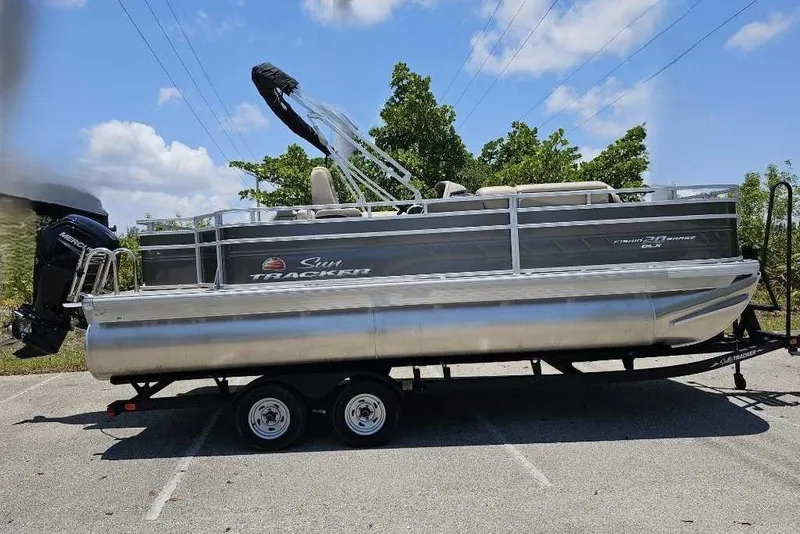 Get the best of 2 worlds with the 2025 SPORTFISH™ 20 DLX. This pontoon boat offers a space built for both serious fishing trips and days of fun on the water for up to 10 friends and family. Spend the day casting lines from the fore fishing captain's chair or the comfortable aft folding chair. These fishing stations feature an aft aerated livewell, drink holders, and rod holders. Navigate to the next fishing spot in the helm's captain's chair and the ergonomic console with a SUN TRACKER FLARE touchscreen, built-in storage space, and soft-touch steering wheel.