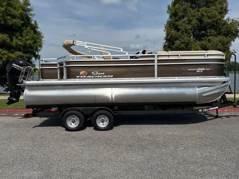 Get the best of 2 worlds with the 2025 SPORTFISH™ 20 DLX. This pontoon boat offers a space built for both serious fishing trips and days of fun on the water for up to 10 friends and family. Spend the day casting lines from the fore fishing captain's chair or the comfortable aft folding chair. These fishing stations feature an aft aerated livewell, drink holders, and rod holders. Navigate to the next fishing spot in the helm's captain's chair and the ergonomic console with a SUN TRACKER FLARE touchscreen, built-in storage space, and soft-touch steering wheel.