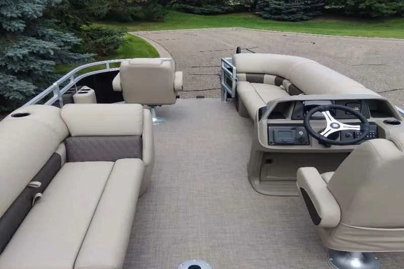 Get the best of 2 worlds with the 2025 SPORTFISH™ 20 DLX. This pontoon boat offers a space built for both serious fishing trips and days of fun on the water for up to 10 friends and family. Spend the day casting lines from the fore fishing captain's chair or the comfortable aft folding chair. These fishing stations feature an aft aerated livewell, drink holders, and rod holders. Navigate to the next fishing spot in the helm's captain's chair and the ergonomic console with a SUN TRACKER FLARE touchscreen, built-in storage space, and soft-touch steering wheel.