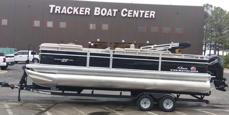 Whether you're on the water to get some fishing done or party it up with family and friends, the 2025 SPORTFISH™ 22 DLX has you covered! This SUN TRACKER® pontoon boat offers room for up to 10 passengers on its 22' deck. The anglers will love the aft fishing deck with dual swiveling fishing chairs that you can fold and remove, a lockable rod compartment, rail-mounted rod and tool holders, and an aerated livewell under the rear bench. Keep your fishing accessories organized in the tackle-storage station.