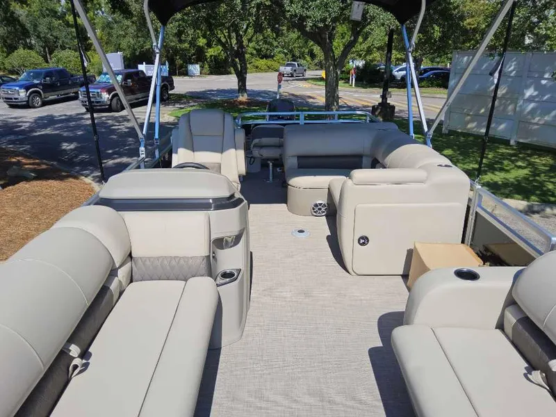 Whether you're on the water to get some fishing done or party it up with family and friends, the 2025 SPORTFISH™ 22 DLX has you covered! This SUN TRACKER® pontoon boat offers room for up to 10 passengers on its 22' deck. The anglers will love the aft fishing deck with dual swiveling fishing chairs that you can fold and remove, a lockable rod compartment, rail-mounted rod and tool holders, and an aerated livewell under the rear bench. Keep your fishing accessories organized in the tackle-storage station.