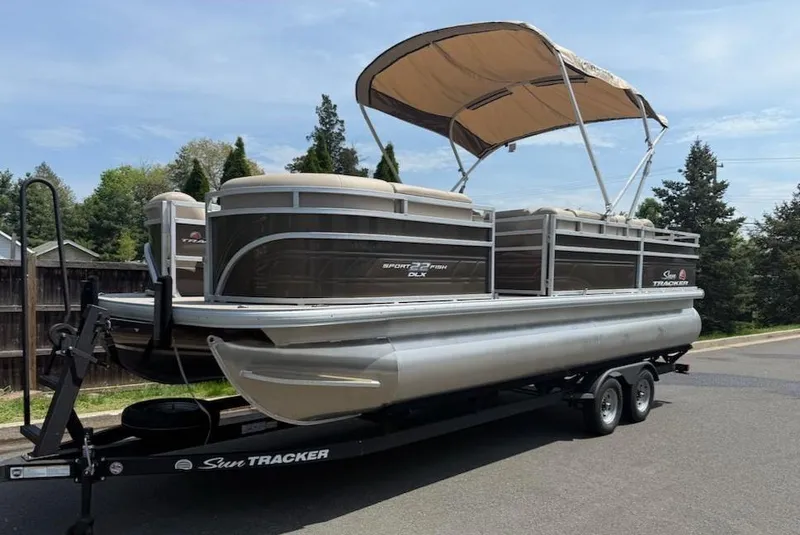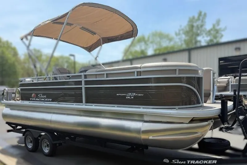 Whether you're on the water to get some fishing done or party it up with family and friends, the 2025 SPORTFISH™ 22 DLX has you covered! This SUN TRACKER® pontoon boat offers room for up to 10 passengers on its 22' deck. The anglers will love the aft fishing deck with dual swiveling fishing chairs that you can fold and remove, a lockable rod compartment, rail-mounted rod and tool holders, and an aerated livewell under the rear bench. Keep your fishing accessories organized in the tackle-storage station.