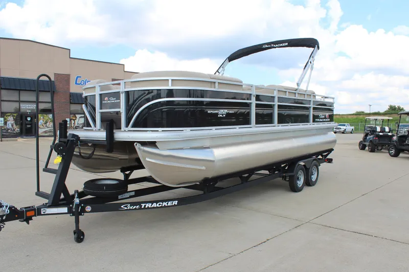 Whether you're on the water to get some fishing done or party it up with family and friends, the 2025 SPORTFISH™ 22 DLX has you covered! This SUN TRACKER® pontoon boat offers room for up to 10 passengers on its 22' deck. The anglers will love the aft fishing deck with dual swiveling fishing chairs that you can fold and remove, a lockable rod compartment, rail-mounted rod and tool holders, and an aerated livewell under the rear bench. Keep your fishing accessories organized in the tackle-storage station.
