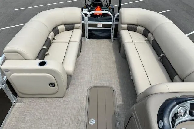 At the bow, it's a pure party pontoon with dual lounge seating. Midship, it's perfect for families with an L-lounge that sits under the new 10' Bimini top (which also has a powered system for easy setup). Aft, it's all fishing with dual fishing chairs, a 16-gallon livewell and rod storage (including a convenient lockable box). Throughout, STOW MORE™ storage, an in-floor compartment, table, new stereo system and more are ready to provide convenience and comfort for any activity.