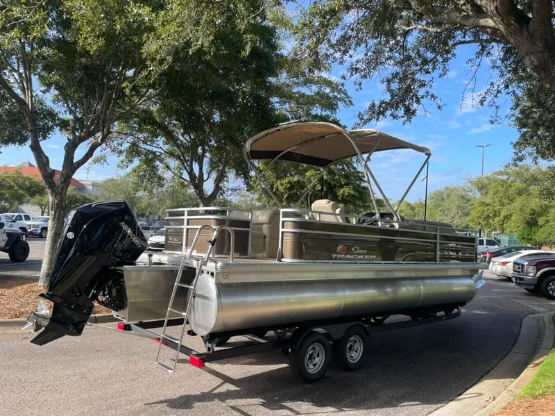 You just can't do much better than the 2025 SPORTFISH™ 24 XP3 if you're looking for the best floating fishing and relaxing station! This SUN TRACKER® pontoon boat's 24' deck stays stable thanks to 3 pontoon logs with lifting strakes. Be ready to wet a line at any moment with the lockable rod box. From the bow casting deck's dual removable and folding fishing chairs, anglers can take advantage of rail-mounted rod holders, an aerated livewell, the tackle storage compartment, and more.