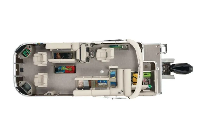 This SUN TRACKER® pontoon boat's 24' deck stays stable thanks to 3 pontoon logs with lifting strakes. Be ready to wet a line at any moment with the lockable rod box. From the bow casting deck's dual removable and folding fishing chairs, anglers can take advantage of rail-mounted rod holders, an aerated livewell, the tackle storage compartment, and more.