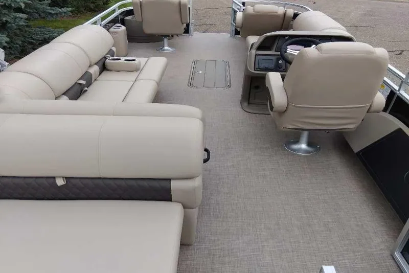 Those who just want to sit back on the water can do so in the rear-facing couch, the L-shaped aft lounge, and the fore couch-all of which hide extra storage spaces under their seats and behind their seat backs. The pilot can relax and find the next cove in the swiveling captain's chair. Find your spot and pull up the 10' QuickLift® bimini top for some shade. When the bites slow down, turn on the 2-speaker Wet Sounds® stereo with Bluetooth® compatibility to create a soundtrack for your day on the water.
