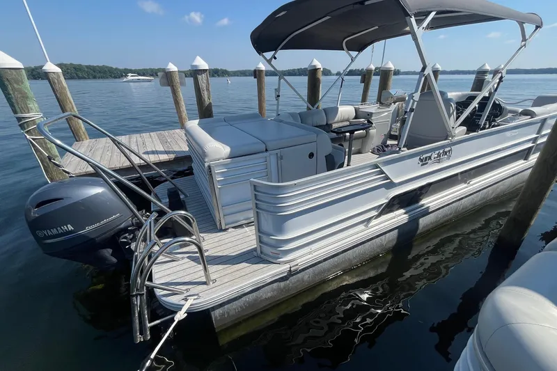 SunCatcher Boats is a Yamaha boat company and everything by Yamaha is well made. The Elite Series boats have just about every feature you would want for a long day of cruising. Powered by a Yamaha 115 Four Stroke you have the power for water sports yet efficiency to cruise for hours and hours. Features include:helm console with spacious storage locker, Bluetooth/App Ready sound system with aux. inputs, 12 volt accessory power source, tilt wheel, safety lanyard, docking lights, accent lighting, floor lighting, illuminated speakers and cup holders, underwater lighting, refreshment console (with faux granite surfaces, sink, beverage holders and storage below), concealed trash receptacle, large in-floor locker, wrap around seating with abundant storage below, mobile table with internal cooler and chromed beverage holders, forward reclined seating with flip-down armrests on both port and starboard seating, large aft sun bed with pop-up changing room/head, three boarding gates (aft, portside, and fore), chromed deep swim ladder, chromed watersports towing point, Bimini top, and stainless steel pull-up docking cleats. This boat has been very well maintained and is ready to take your family on many great adventures!